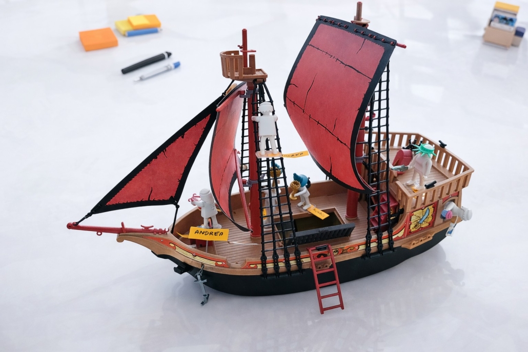 In meinem PLAYMOBIL® pro Workshop für Führungskräfte entwickeln wir klare Strukturen, Rollen und Kommunikationswege für erfolgreiche Veränderungsvorhaben. Ob Umstrukturierung, neue Strategien, Rollenwechsel oder Kulturwandel – mit PLAYMOBIL® pro werden komplexe Change-Prozesse sichtbar, greifbar und gestaltbar.